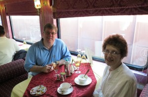 After showering and dressing, we headed to the dining car for breakfast. That’s where we heard others laughing about the rocking and rolling last night. The good news is that everyone was smiling and not worried about it.