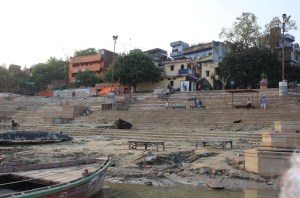 Since we ended up eating lunch a little later, we headed to the Ganges for our boat ride. We will take a ride on the river up to the site of the evening Aarti and then head back to the train for a late dinner.