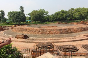 Our first stop is a short distance from Varanasi in the city of Sarnath. It is here that Gautana Buddha is said to have first taught about the dharma after attaining enlightenment. There is a Buddhist Stupa and temple located in the area where Buddha first preached and lived.. They are located in the same area as one that was previously destroyed by a Mughal ruler who believed that great treasure was hidden inside – there was no treasure.