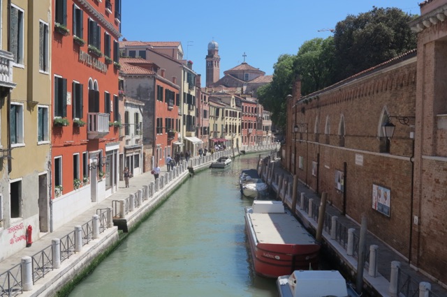 By now, we were a little tired of walking and decided to head to the waterfront to catch a vaporetto back to the hotel. The breeze coming off the lagoon felt great in the sunshine. The skies being clear, we were able to take some pictures across to San Giorgio and along the shore before we headed into the canal. All the boats were full to the brim with people heading towards the train station and the cruise docks.