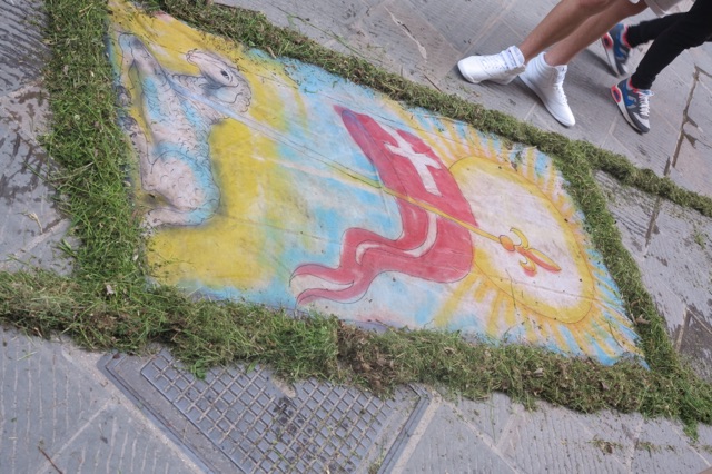 On the walk back to the car, we passed by a group that was creating religious street art in preparation for the feast of Corpus Christi. They used flowers and grass to make some beautiful images.