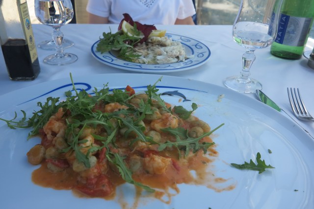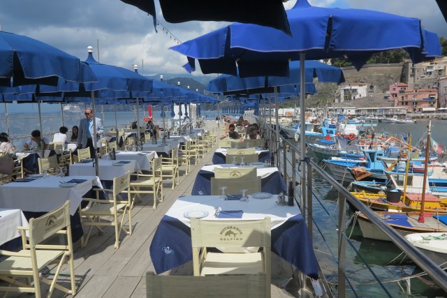 We decided to have a late lunch there instead of waiting for a big dinner later in the evening. One of the best restaurants in Sorrento (I know, I said it was outside) is located here – Ristorante Bagni Il Delfino. They have an extended dining area that goes right out on to their pier. They have a wonderful menu, lots of fresh fish choices and some great house specialties. Add to that, an extensive wine list and you had two happy tourists.