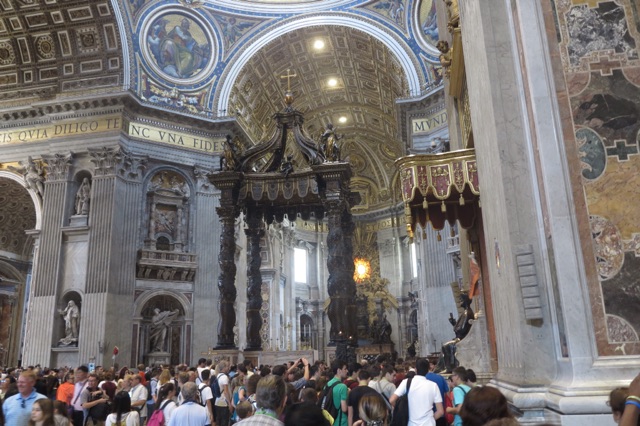 The basilica was very crowded, especially around several points – the Pieta, the Tomb and Chapel of Pope John Paul II, and Bernini’s incredible altar piece. We also managed to find the spot where Charlemagne knelt to be crowned Holy Roman Emperor on Christmas Day of the year 800 AD.