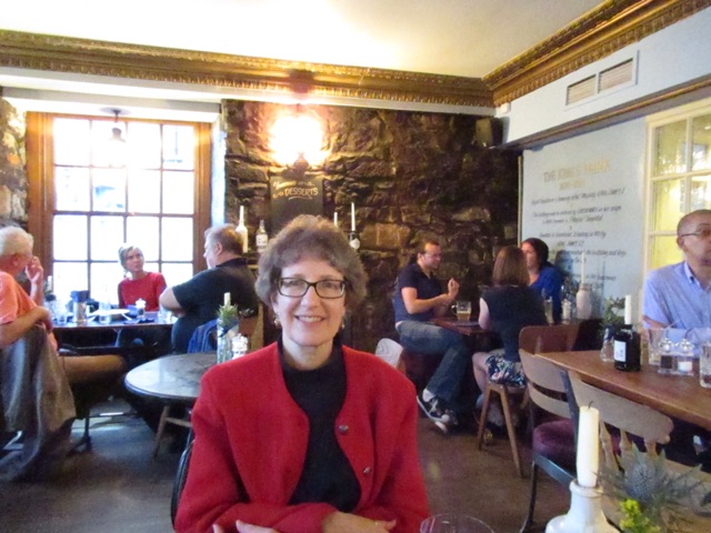 We had dinner at a pub called “The King’s Wark”. This is a place that has been in existence for nearly six hundred years. It was originally the home of King James I dating back to 1434. It is also supposed to be haunted. I’m not so sure about that claim as the only spirits I saw were being drunk from glasses. Though it did seem like my glass kept emptying. Maybe?