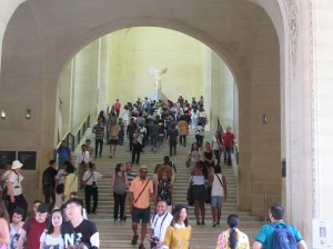 The first of the “famous” works we came across was the “Winged Victory”. It stands at the top of a staircase, which means people bunch up on the stairs to snap pictures. We were somewhat lucky in that we were at the tail end of a tour group, so once they moved on we had a open view.