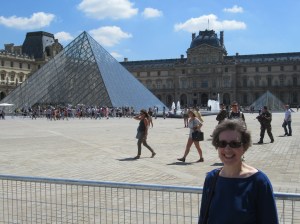 We arrived at the Louvre and the ticket line was already pretty long. Luckily, since we already had our tickets, we got to go to the short line and walk right in. Sue made me promise not to make faces at the people who were looking at us as we strolled right to the front – but mentally – I did!
