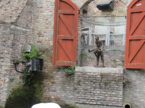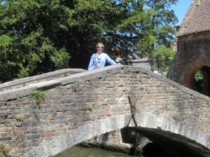 Leaving the church, we continued our walk under skies that we will remember as being “Bruges blue”. We wound our way along the canal passing by quaint little bridges and houses. Every few minutes another boat would cruise by loaded with camera-wielding passengers.