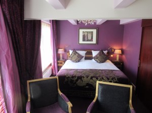 After checking in, we are led up to our room. Room 53 is a lovely room with a canal view, nice comfy bed and a huge bathroom. There is both a tub / shower combination and a self-contained shower with a rainforest shower head. There’s a nice sized closet, minibar and facilities for coffee and hot water. The room is not as large as the one in Bruges, but equally nice.