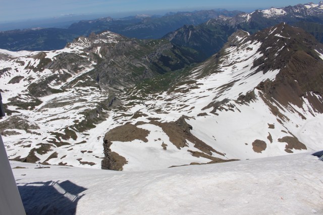 When you finally arrive, you have a 360 degree view of some awesome scenery. Snow covered mountain tops, streams of water from the melting snow rushing down the mountain, views down to the towns in the valley and on this day – blue skies.