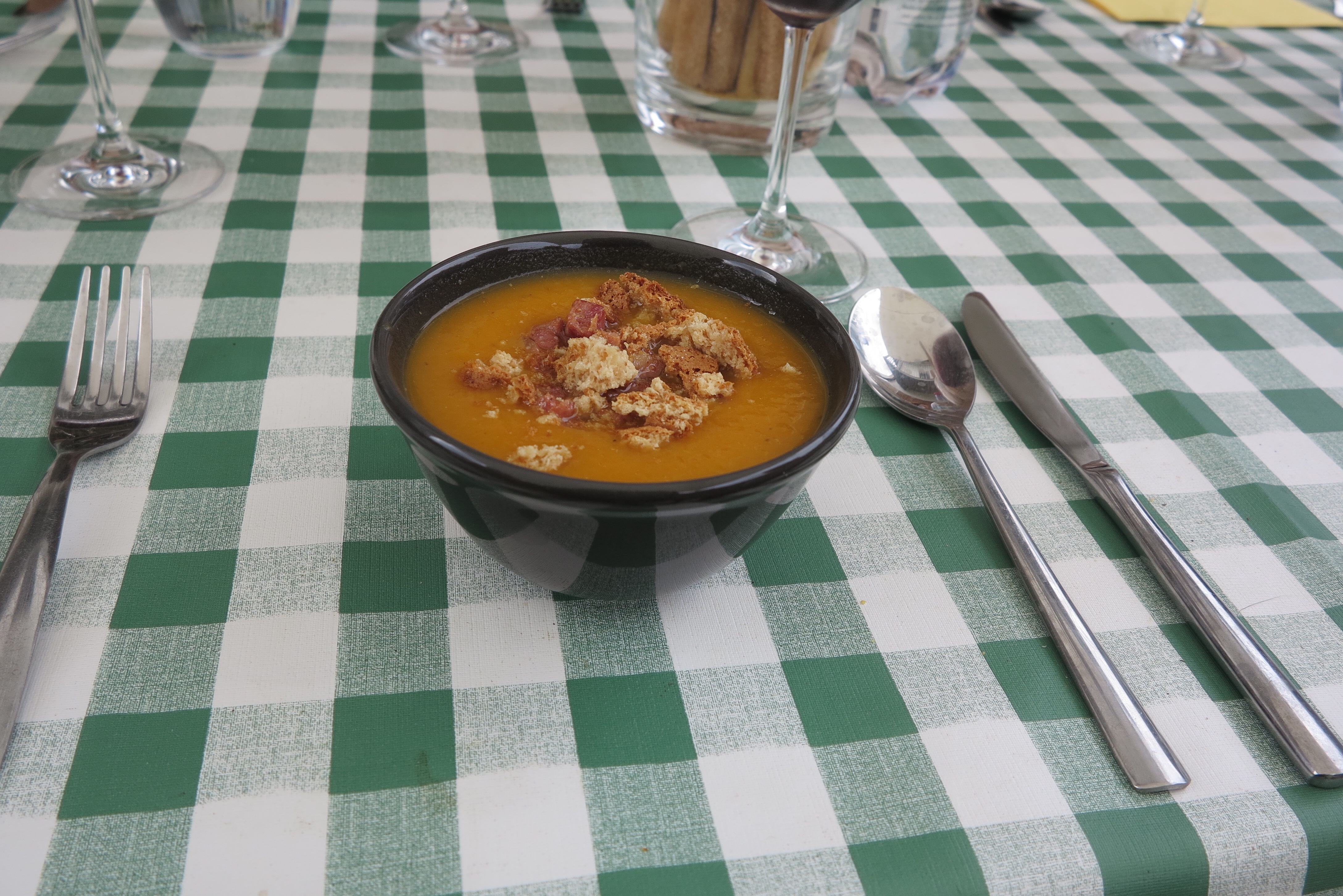 First came the Zuppa di Zucca. It was rich and creamy and tasted delicious. Some pancetta and amaretti crumble were a perfect offset to the flavor of the pumpkin.