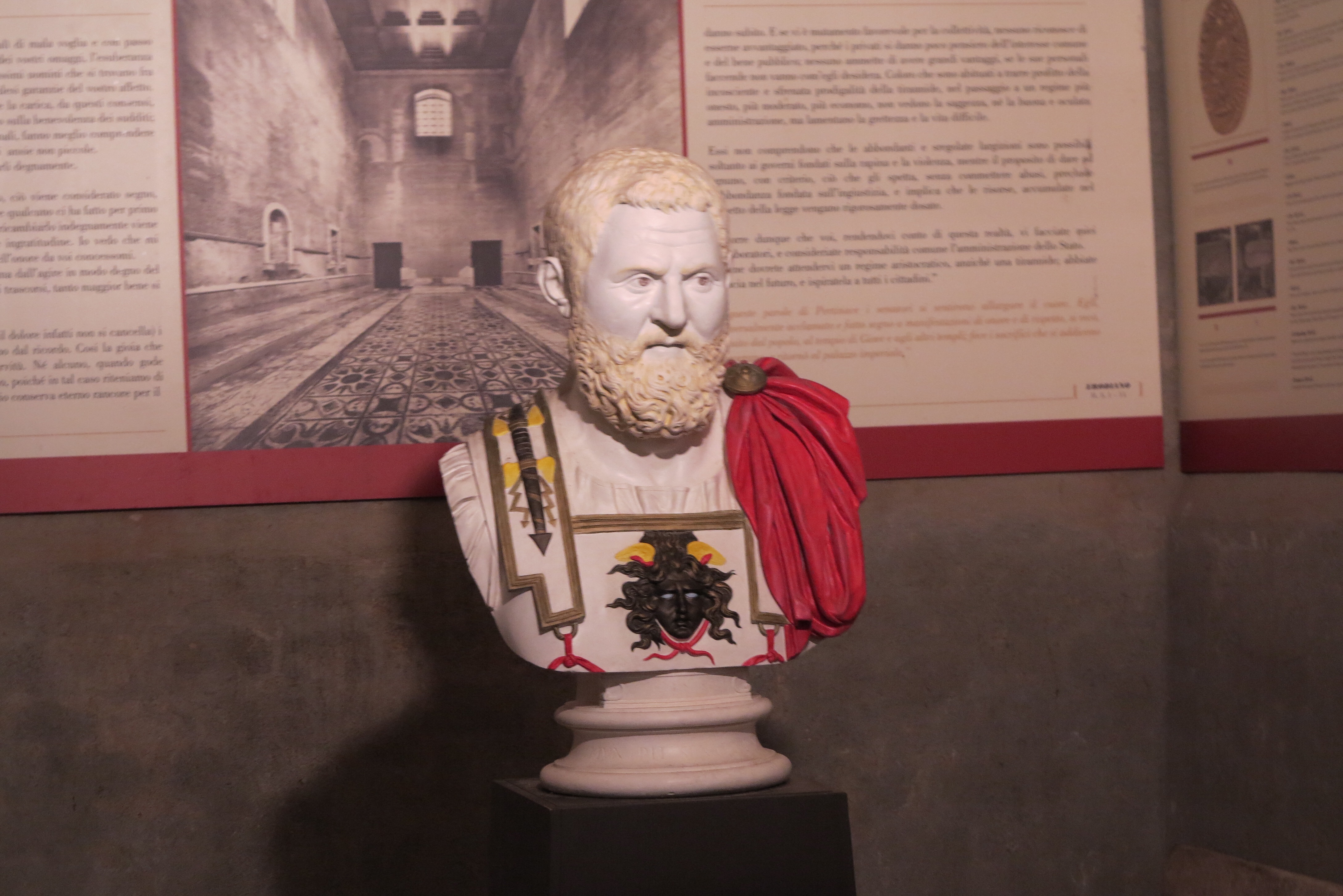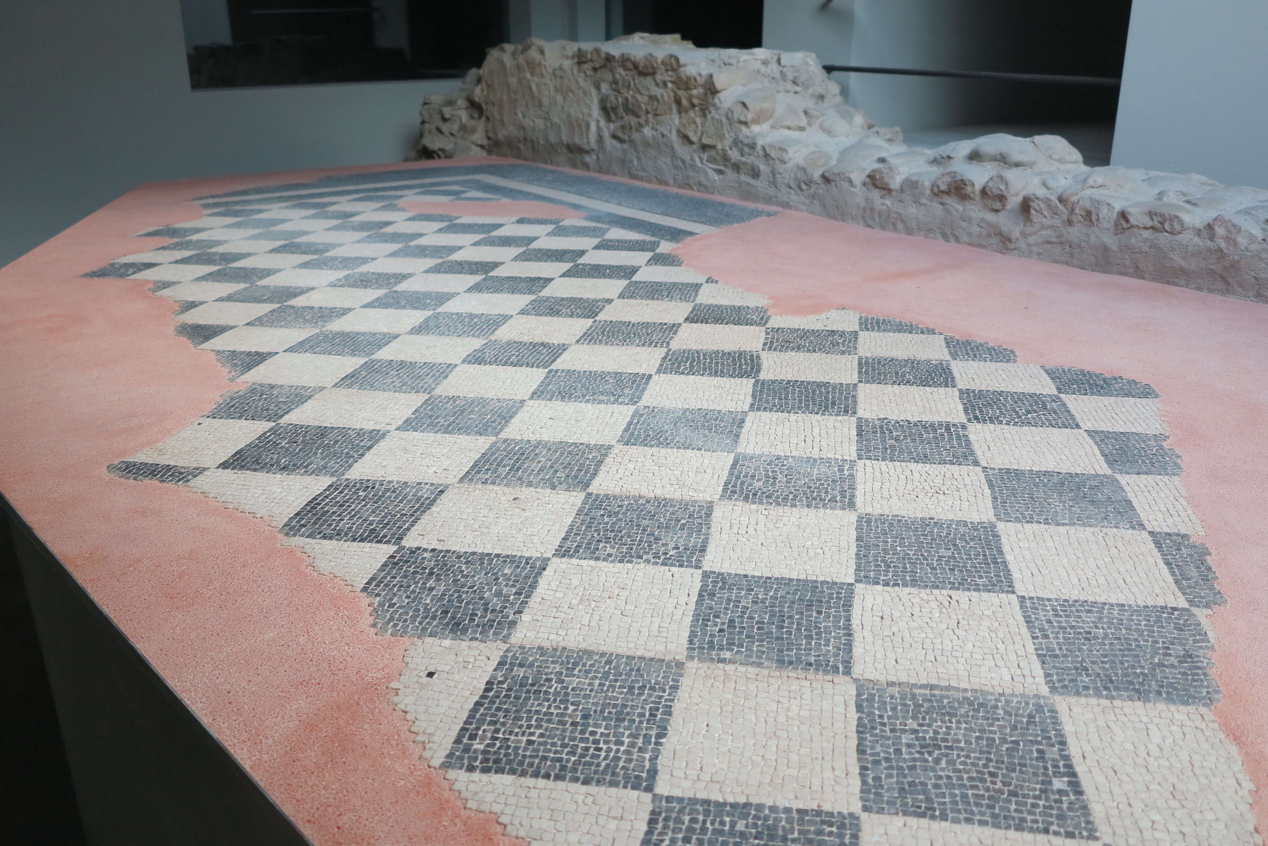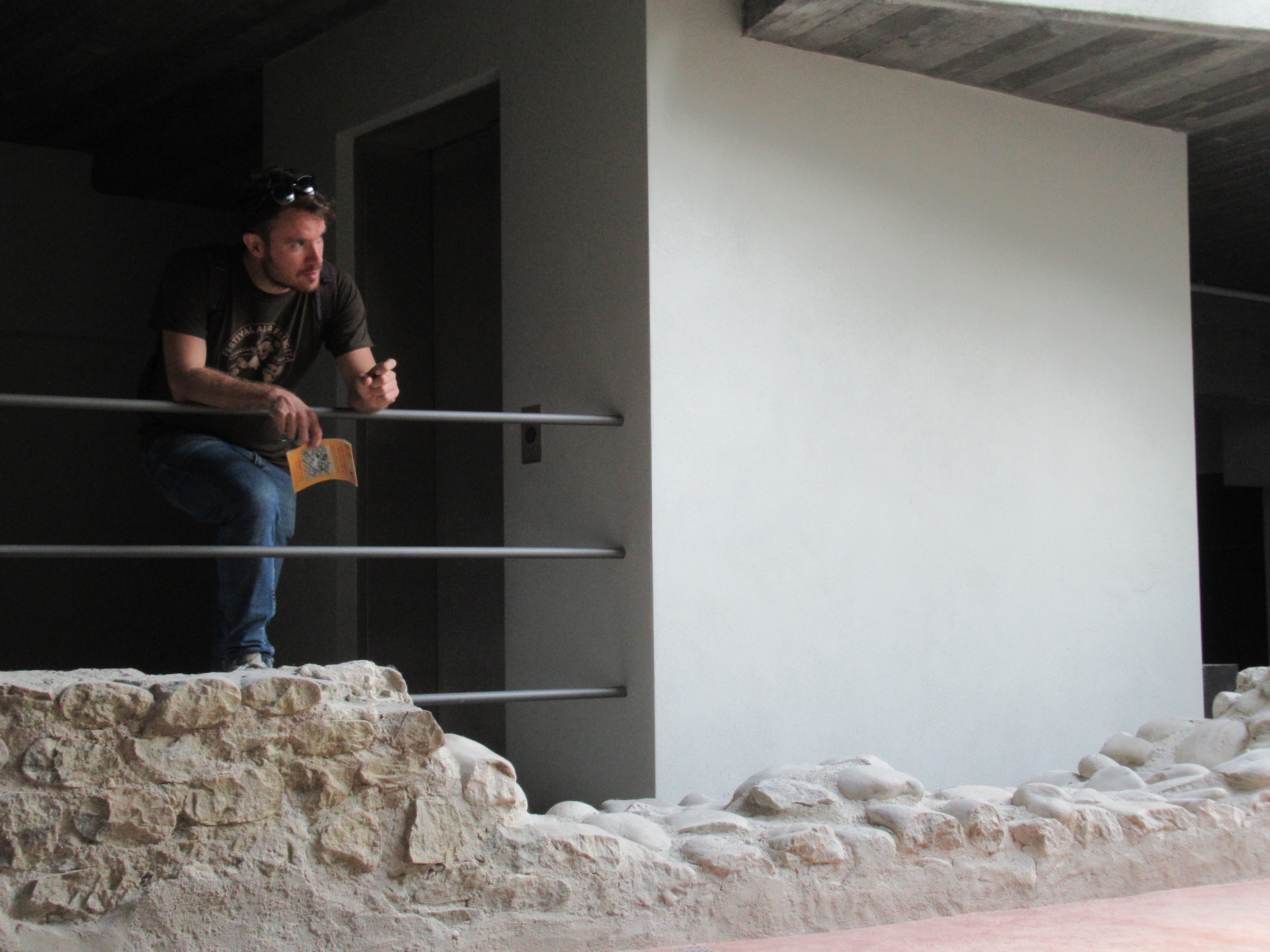 There were three sites that we were taken to see: a section of walls and towers, plus masonry pieces including caps from old columns, a section of sewer system and rooms from a house that were found beneath a private home, including some mosaic tile work and then lastly an archaeological site located beneath a school that included an intact vaulted storeroom.