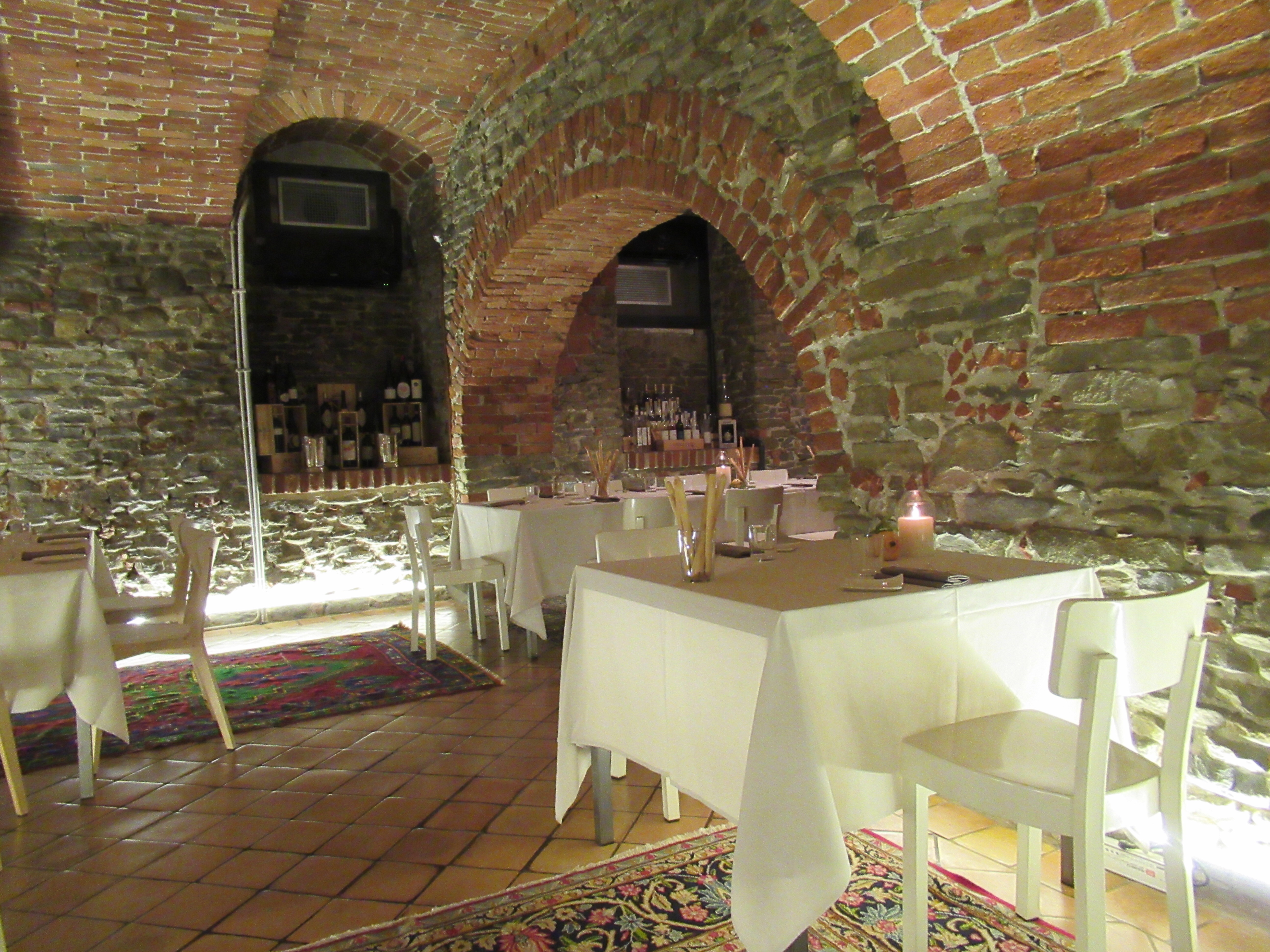 Tonight’s dinner is at a restaurant called ‘Enoclub’. It’s located in the Piazza Michele Ferraro where we’ve been meeting our guide, Luca, each morning. More specifically, it is a vaulted wine cellar beneath it’s sister restaurant and is considered one of the most romantic in Alba.