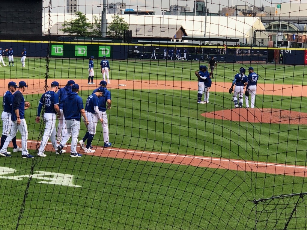 So our first mission upon waking was to check the weather. The forecast called for some potential rain showers, and the dark clouds were a reminder that sometimes the forecasters are correct. Though the skies looked ominous, we took a nice walk to the ballpark with the sun actually peeking out at times.