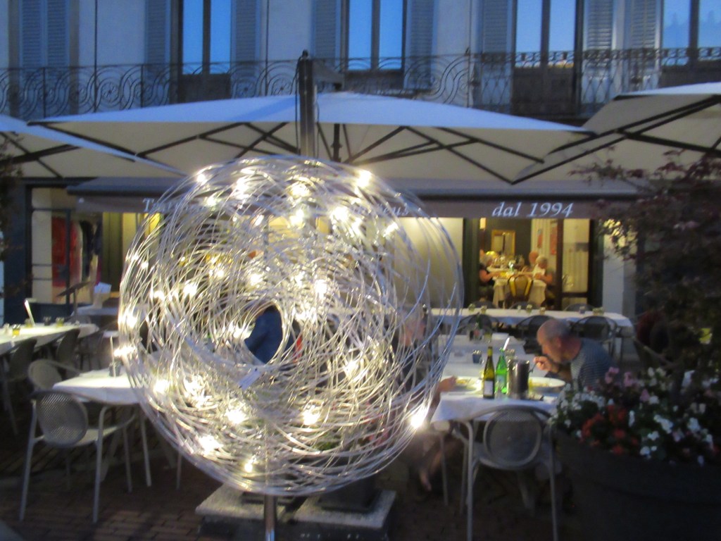 Our first night’s dinner was at Trattoria Sant Ambroseus. It is literally right around the corner from our hotel in the beautiful Piazza Vecchia. The piazza was lit and lively with people enjoying the beautiful evening.