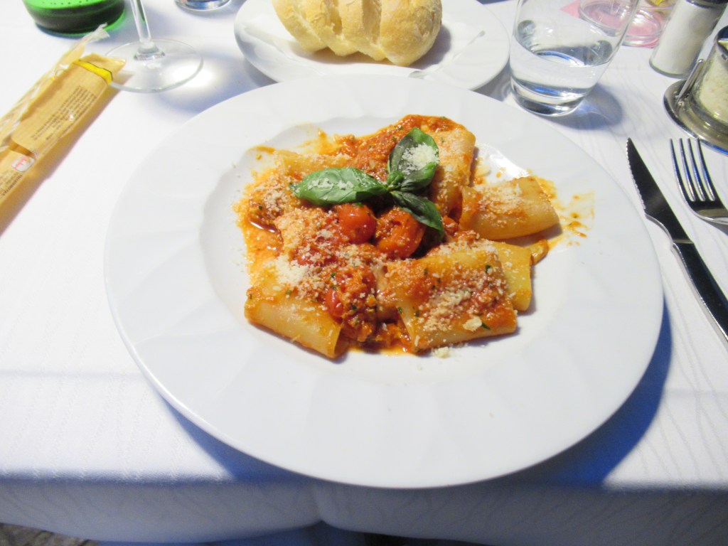 Dinner was at Enoristorante La Tana, just a short downhill walk from our hotel. It was a warm, humid evening and the bugs were buzzing – making us their dinner! Yikes!