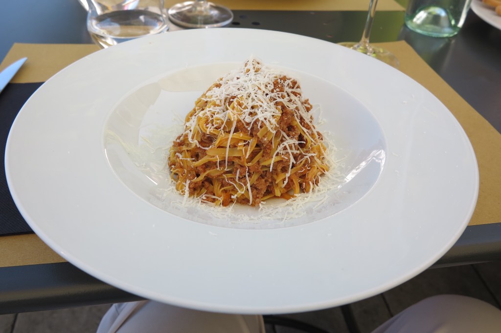 We sat on their terrace and had a very relaxing and delicious lunch. Sue had the guinea fowl and I had the tajarin. We both were cognizant of not over-eating, since you never know what the tasting locations will provide in the afternoon.