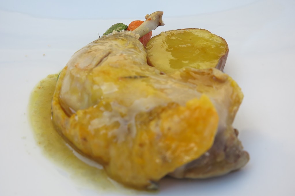 We started with an amuse bouche of puréed squash, with a touch of spice to get thing rolling. Our first course was a Beef carpaccio with shaved truffles. The next course was a poached egg with crema and truffles. That was followed by a portion of tajarin in a butter sauce with truffles. Next came a portion of veal cheeks with truffles. To complete the meal, dessert was a Bunet with a hazelnut puree.