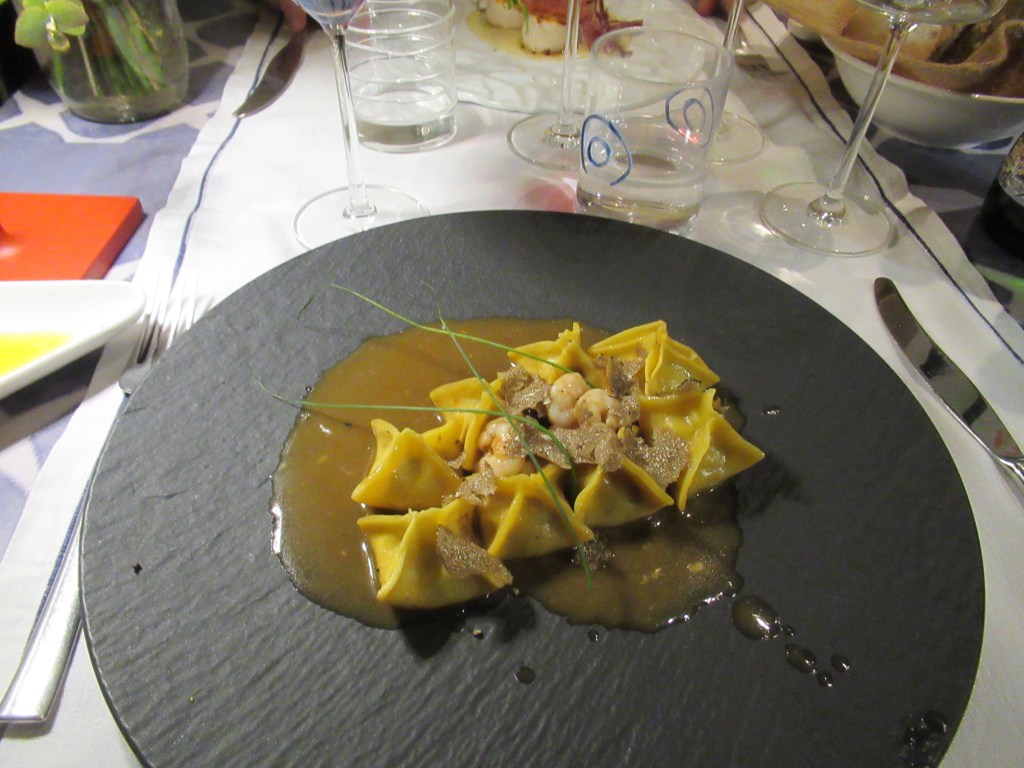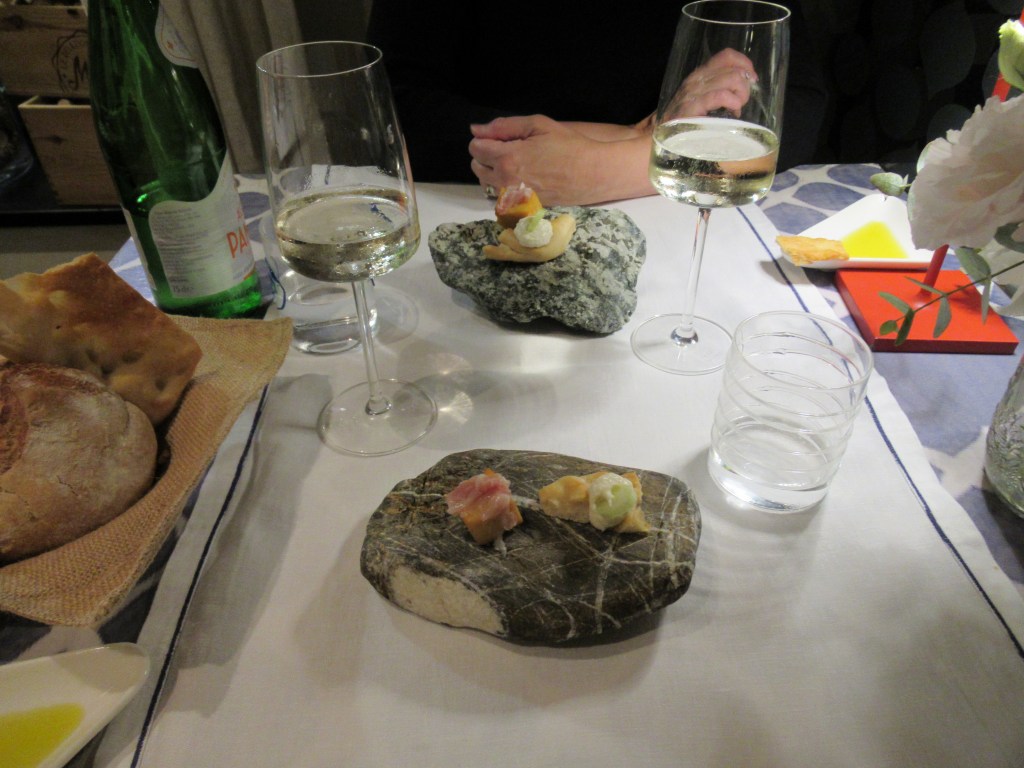 We were seated and then the fun began. We started with water and a glass of prosecco to ease into the meal. The menus and wine list were presented and everything sounded great. They had some different choices from what we had been eating recently so we were looking forward to the change.