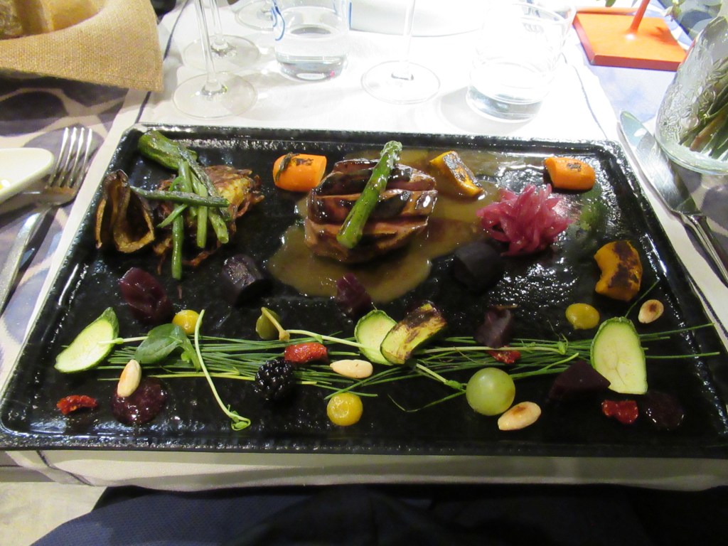 It was actually getting warm in the sun, so we headed back to our side of the tunnel to relax for a while. By now you all know that means we found a place for a glass of wine. Today also included a small bite to eat.