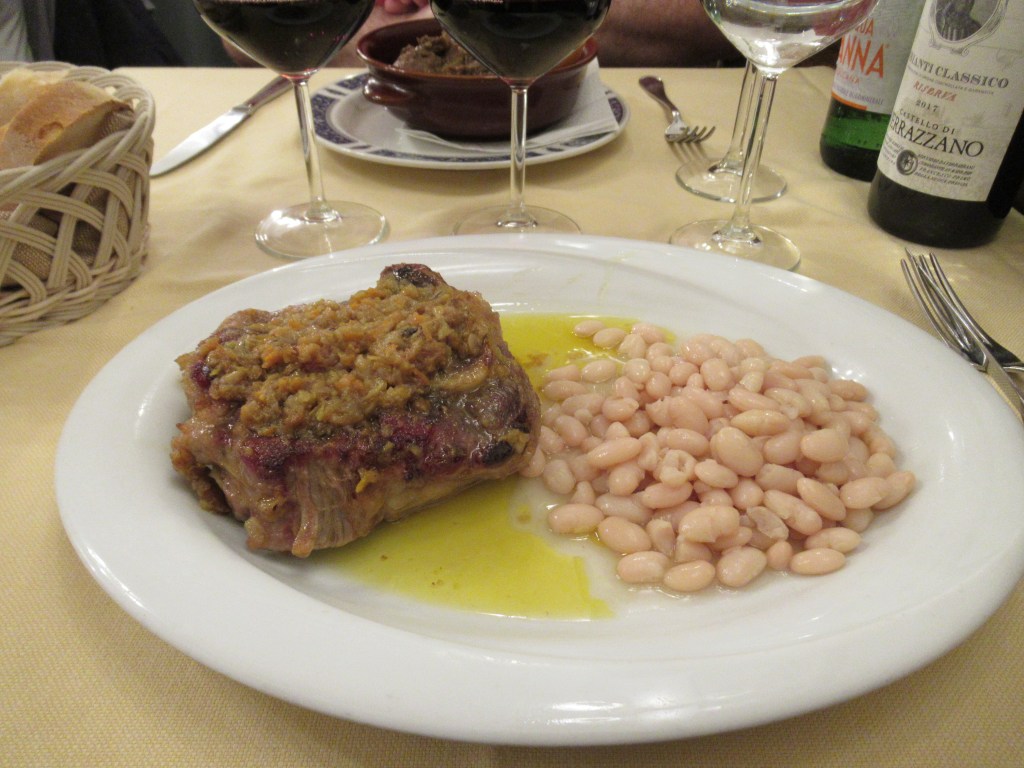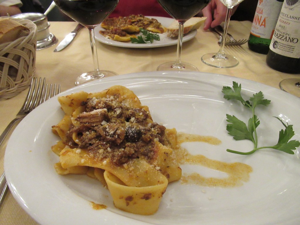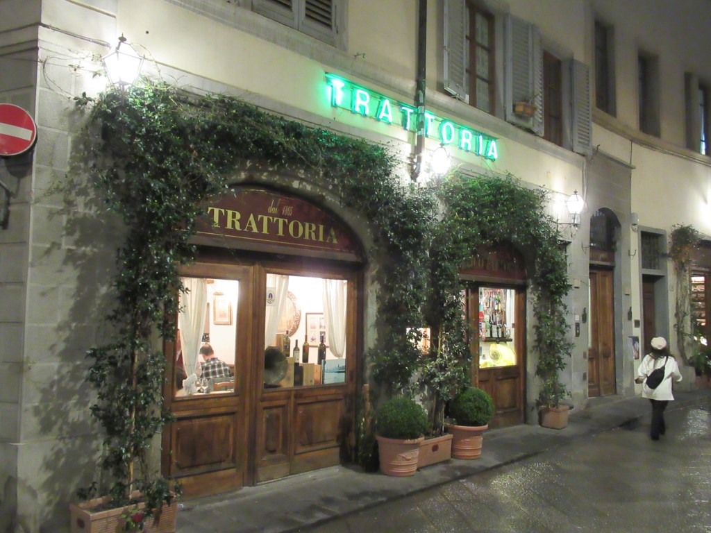 The rain let up before dinner time, but we looked like Fred and Ginger dancing around puddles on the way to the restaurant. For our first dinner, we chose Trattoria Antico Fattore. It was just five minutes away, right around the corner from the Uffizi Gallery.