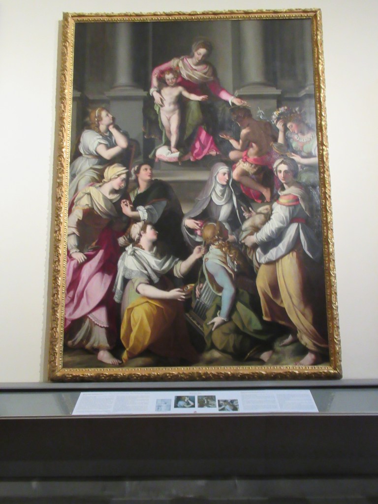Our tickets are for a 1:30 entry time, so we have a little over forty-five minutes to wait. We exchanged our voucher for our tickets, which included entry for the Uffizi tomorrow. About fifteen minutes before our time, they line everyone up. That simple little step keeps the pushing and jostling down to a minimum.