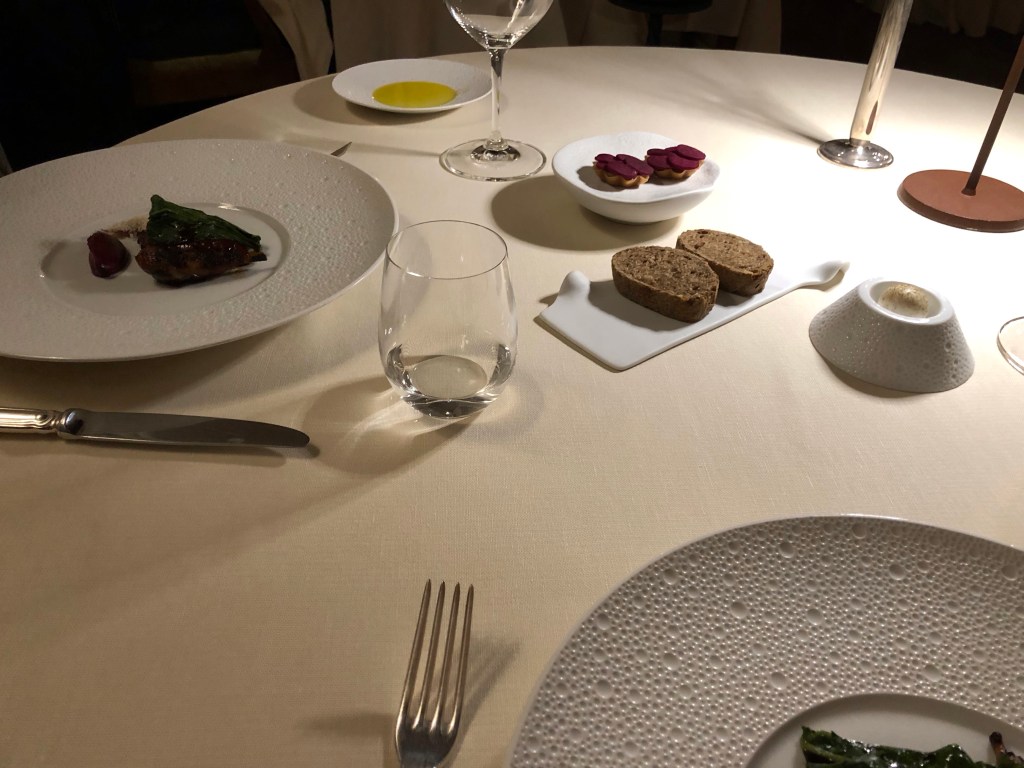 Hey, that’s only four courses. Yep, I ate my soup before I remembered the picture. Everything was delicious. We enjoyed the wines and our servers were so much fun. Nothing stuffy about this one star Michelin restaurant.