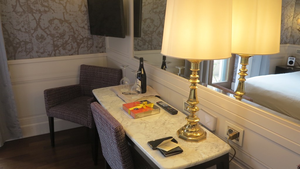 Our room is perfect. Nicely furnished, comfortable, right across from the elevator and we have a balcony overlooking the piazza.