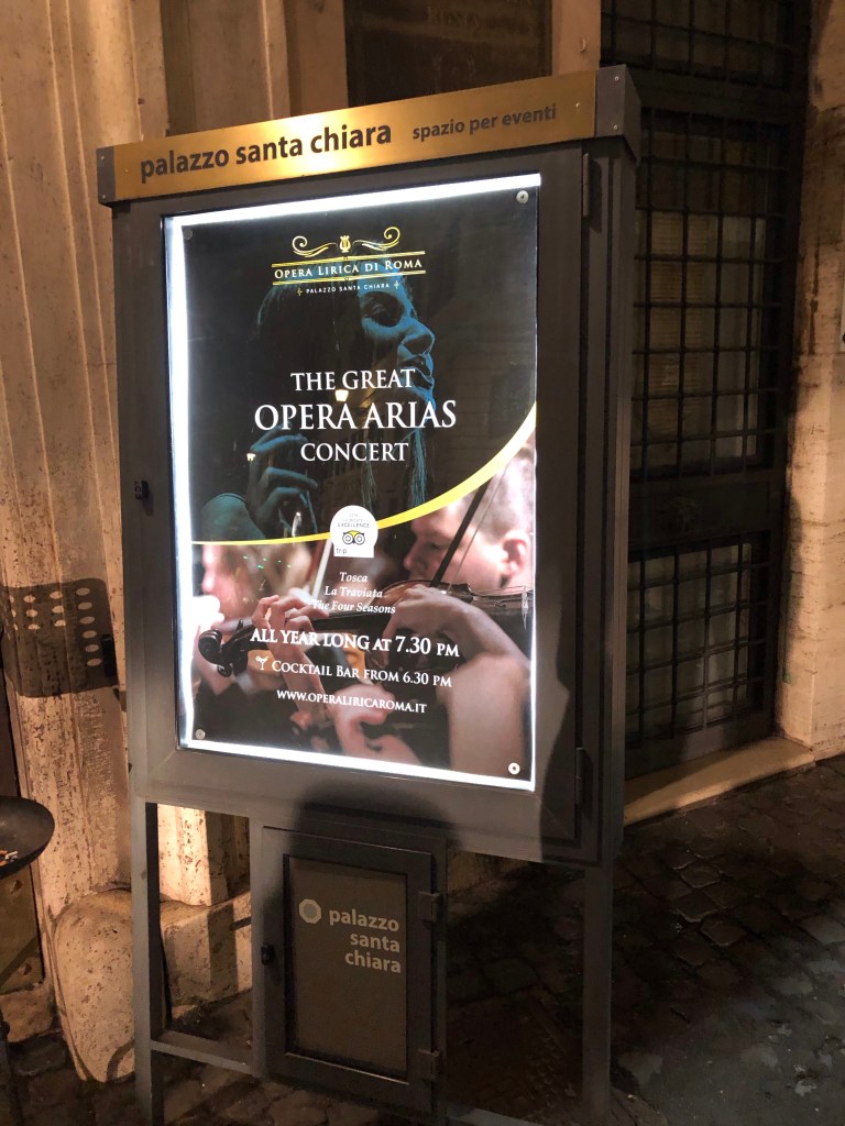 On Sunday, we attended a performance of “The Great Opera Arias” at the Palazzo Santa Chiara. Although nobody knew us, we held back on singing along.