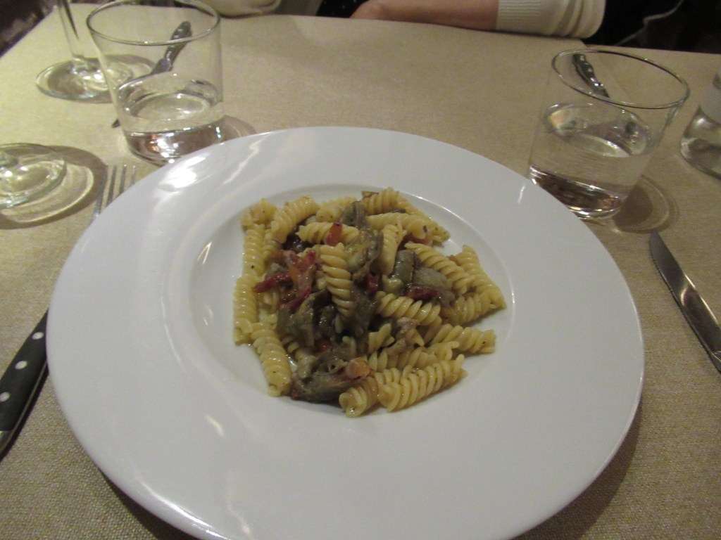 As for lunch, we turned it into an early dinner. We didn’t sneak in pictures of everything, but it was fabulous. We started with a glass of Prosecco, then moved on to a half bottle of Vino Bianco (Trebbiano) and then a half bottle of Vino Rosso (Rosso di Montepulciano).