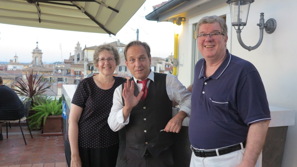 Our last official stop on our Italian Holiday was the hotel’s rooftop bar. The views across the rooftops and of the crowds below were a pleasant way to bid Italy – Arrivederci!