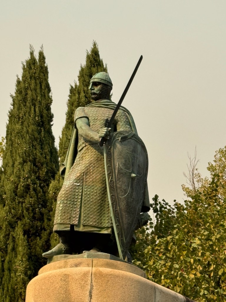 In the square, there is a statue of Portugal’s First King – Alphonse Henrique I. There have not been any paintings found with his likeness, so he has been done with an almost hidden look – beard and mustache, full helmet, battle gear and large shield with a Templar Knight cross.