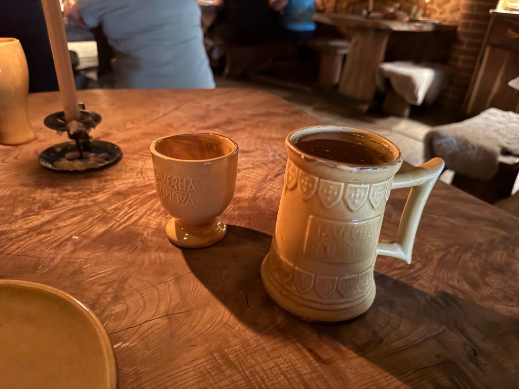 Our next stop was lunch at Taverna Antiqua. It is a medieval-themed restaurant. Candles on the tables are the only illumination. The wait staff is in period clothing. The menu, as would be typical of the time, is heavy on meat and fish. I tried my first mug of mead with my meal!