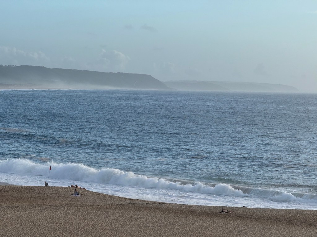 In just about an hour’s time, we arrived in Nazaré. Narrow streets led us in the direction of the ocean and then there it was: a stop sign – and then the ocean.