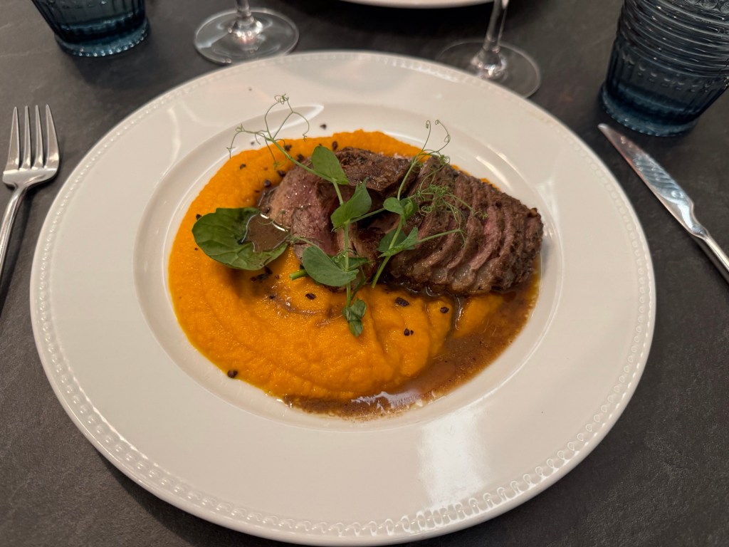 For our mains, Sue had the Guinea Fowl with risotto and I had the grilled duck breast with puréed sweet potatoes. We had a lighter Douro red wine to accompany our meals. Both were excellent!