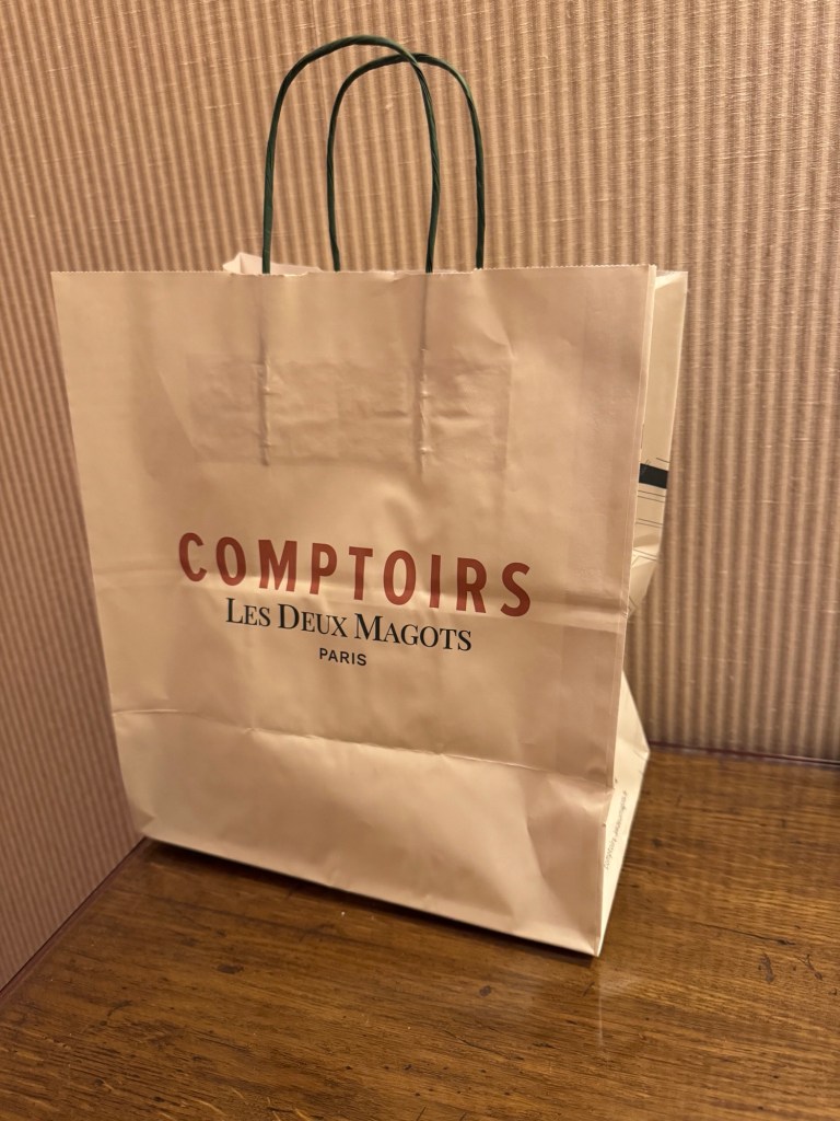 It only took a few minutes of walking until we found it. We had actually passed by twice in the last couple of days without realizing it. Comptoirs des Deux Magots is the name and we were happy that we found it. It’s nothing fancy, but the food is good. We both had chicken Caesar sandwiches. Before leaving, we picked up a few financiers for back in the room.