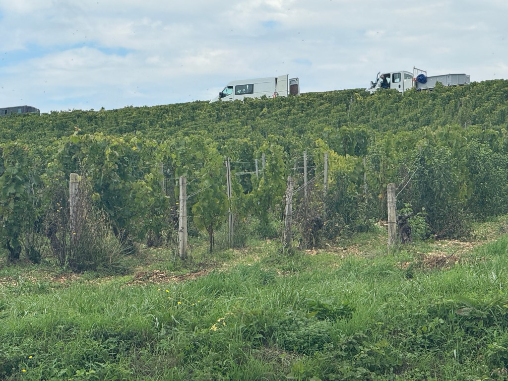We all did our own thing for a little while afterwards – naps, reading, reviewing photos and blogging. Once we were all back to being chill, we decided to take a ride to see the vineyards and check out the harvesters. We started with a drive up Grand Crus Hill.