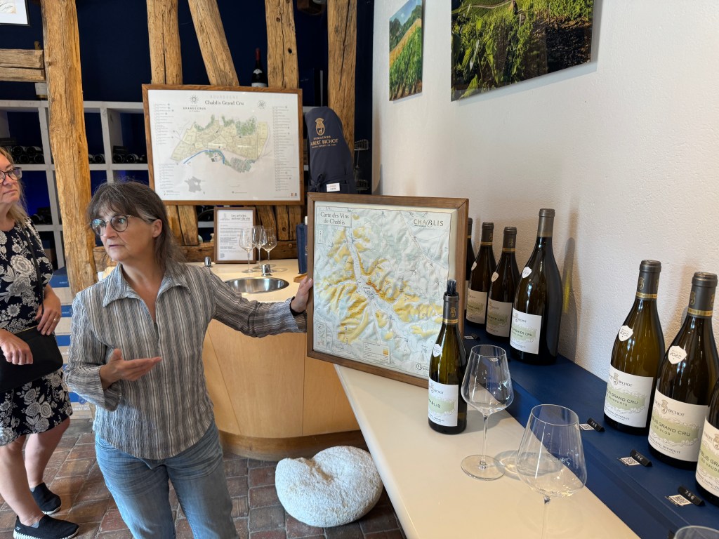 Our tasting included a Chablis, two Premier Crus and two Grand Crus. The premier crus were from Les Beugnons and Les Lys, while the Grand Crus were from Les Vaudesirs and Les Blanchots. All were different, all were good and some went home with us.