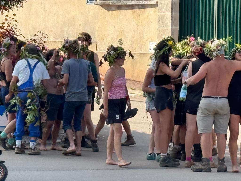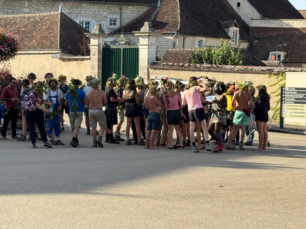There is a tradition here where once the harvest is complete at a winery, the pickers will parade down the streets honking tractor horns. Some will have drums or a trumpet of sorts. The pickers will whoop it up and sing and just celebrate with their weary bodies the end of the harvest. Many will wear laurel wreaths made from grape vines and there is usually a “Bacchus” or two among the revelers. You can always tell when someone has finished as the horns and chants can be heard throughout the town.