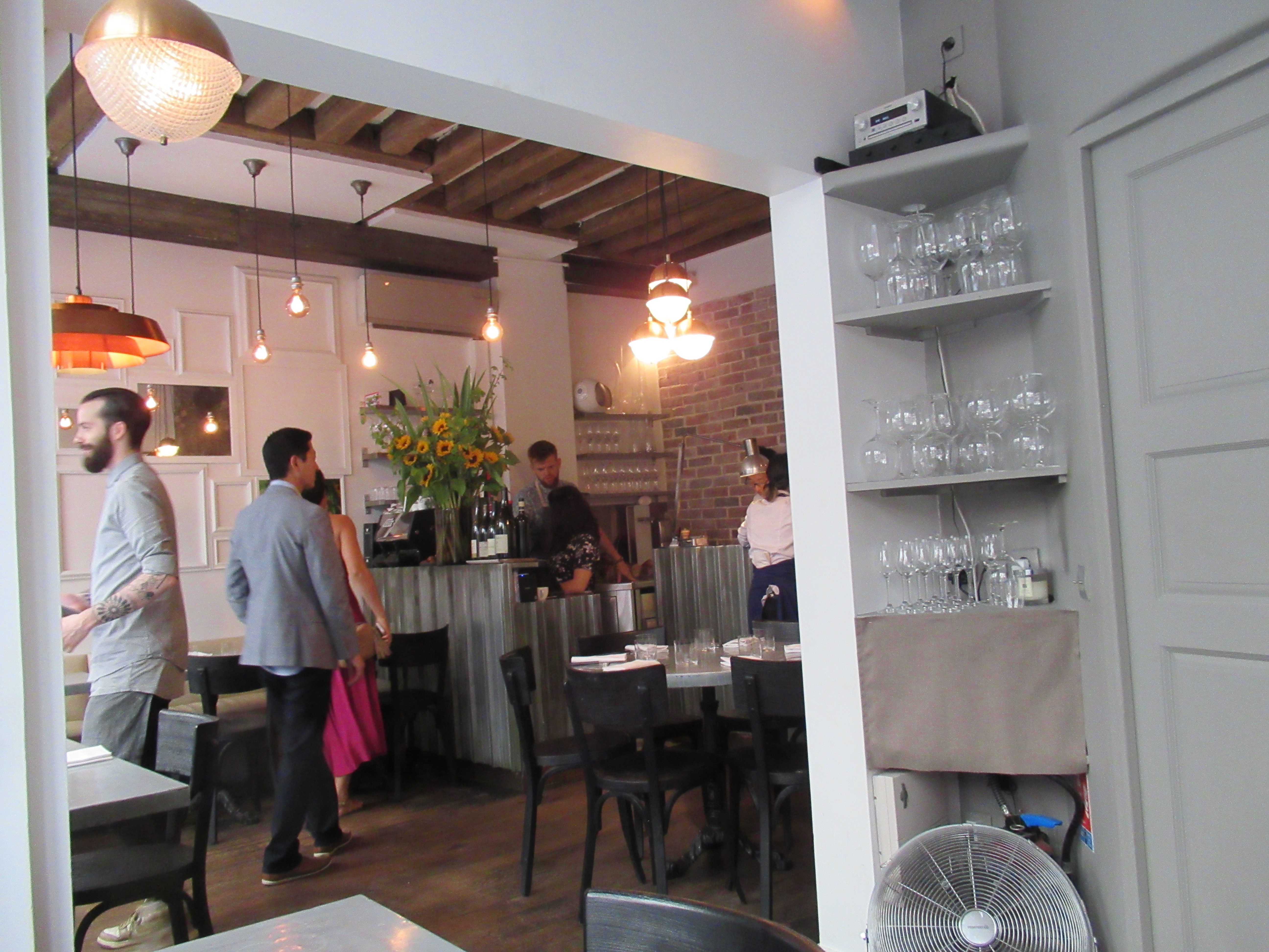 Customers filing in