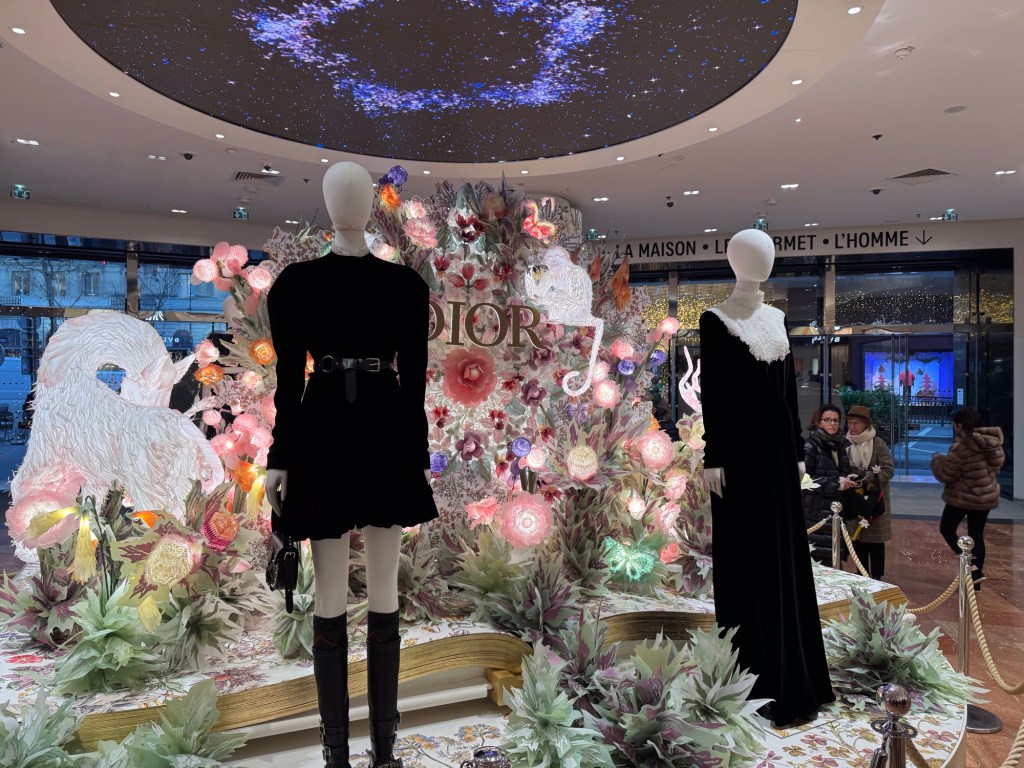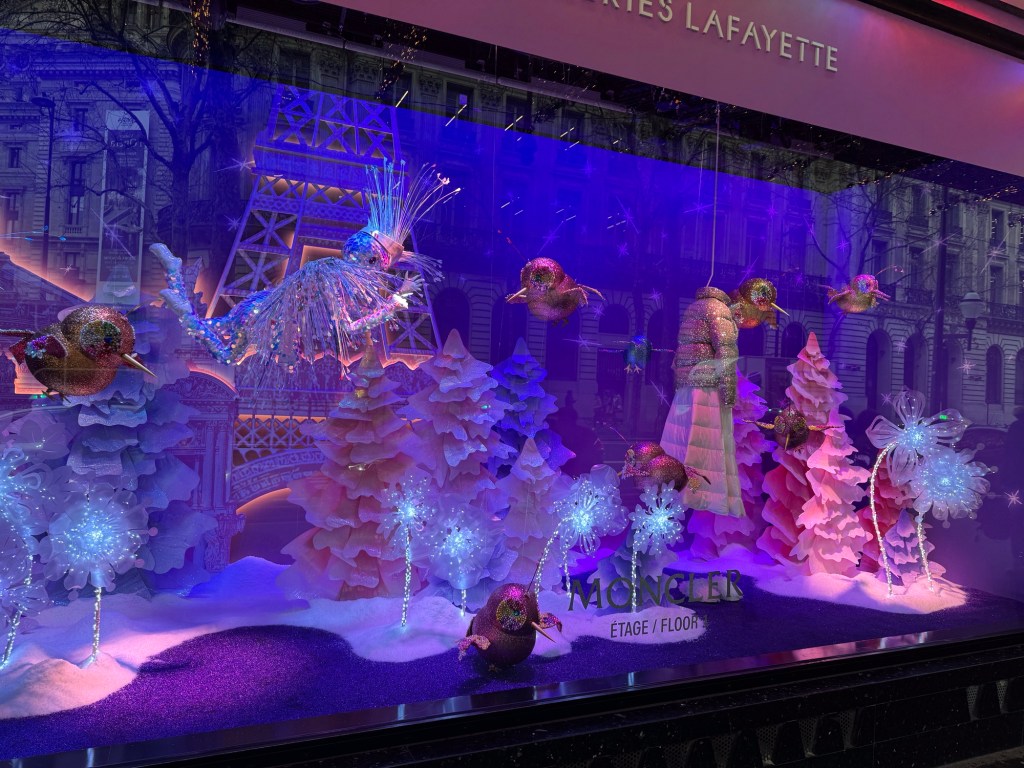 Galeries Lafayette is celebrating their 130th Christmas. Looking from the outside, I figured it would take my whole allowance just to buy a cookie. It seems like they had displays from every high end designer and luxury product company. But it doesn’t cost anything to look…right ?