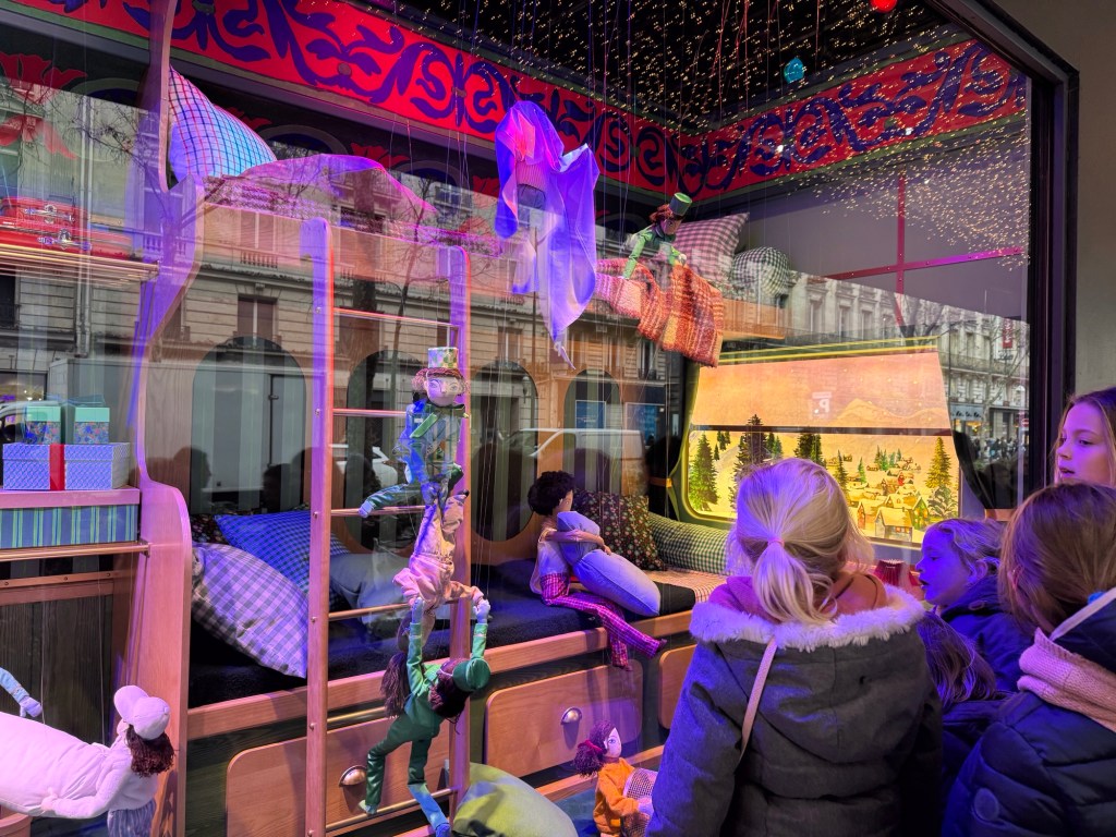 Printemps is known for their delightful window displays. This year’s theme is the Printemps Express. It’s a magical train ride to Christmas.