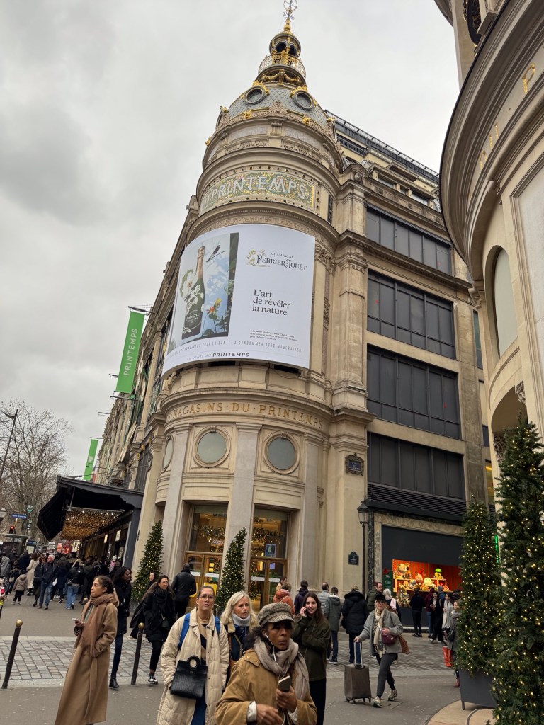 It didn’t take long to get there as we just retraced our steps from last evening. Once at the Aubert station, it was just a five minute walk over to Boulevard Haussmann. We started at Galeries Lafayette.
