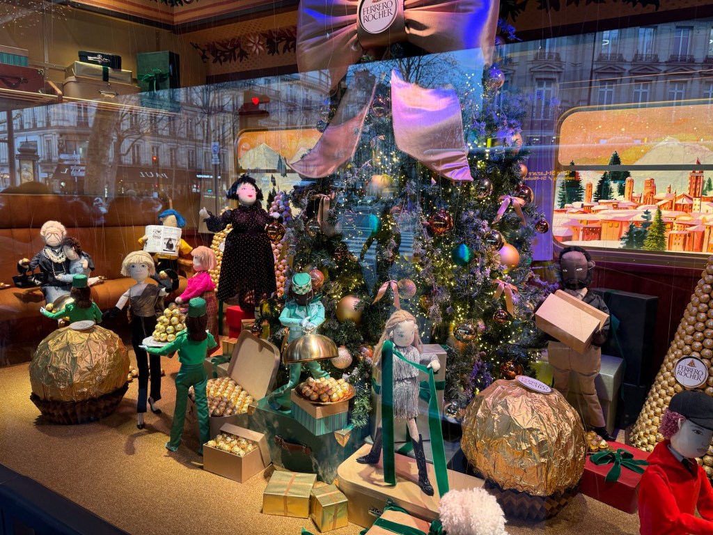 It may have been a little chilly, but it was a lot of fun. The decorations were beautiful, we got ideas for where places were that we want to visit and learned a new short cut via the Metro and RER trains to move about the city. Also learned about ticket inspectors as they were at the exit when we returned to Saint Germain station. No worries though.