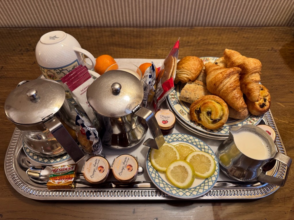 Woke up after a good night’s sleep feeling ready and raring to go. The breakfast room was getting a facelift, so the hotel was providing breakfast in your room. We had the basic continental breakfast with tea, bread and pastries – figuring we would get lunch later, while we were out and about.